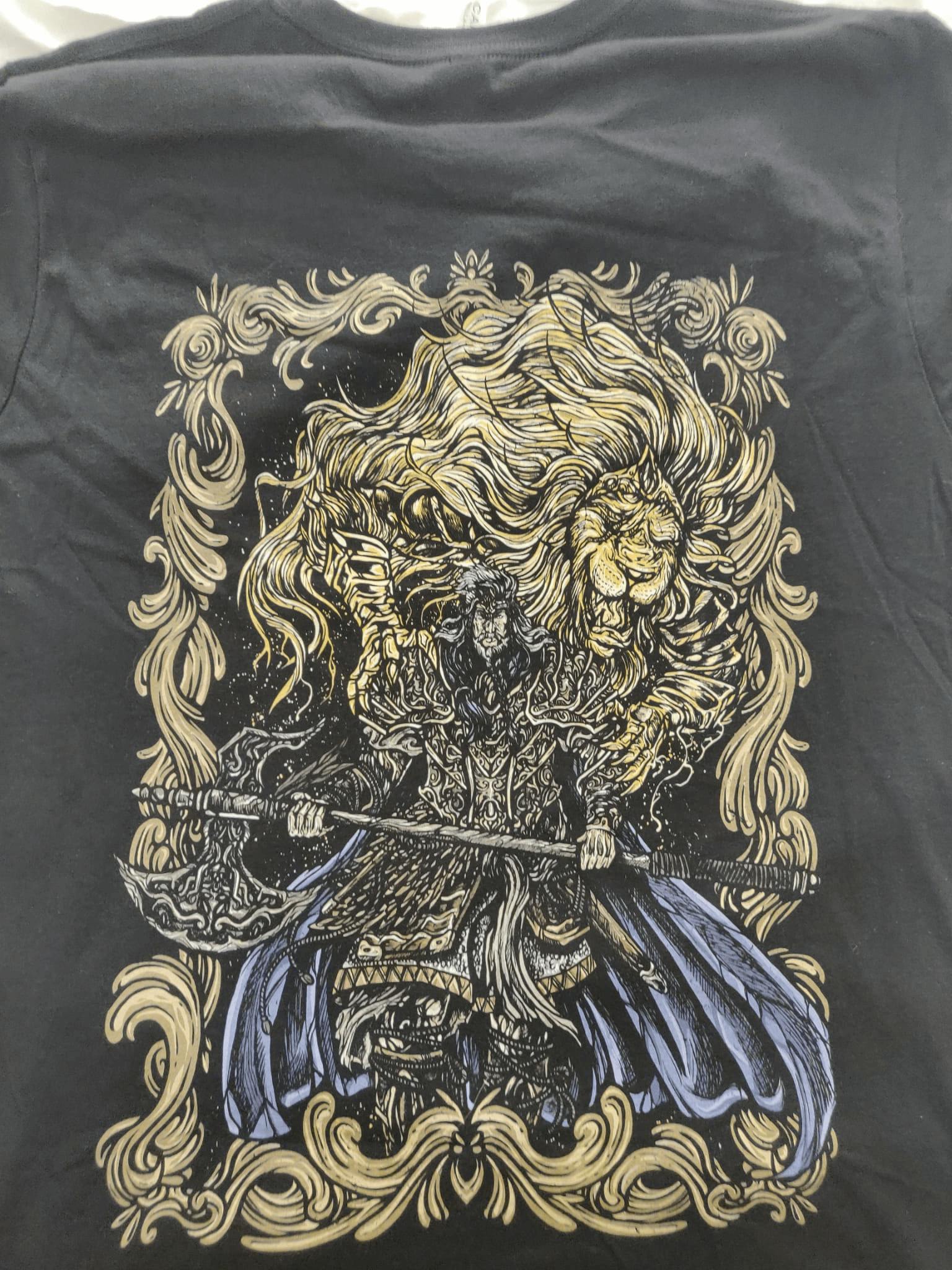 This Lands Between-inspired tee features Godfrey, the First Elden Lord, the mighty warrior who once led the Golden Order’s armies. Showcasing fierce artwork of Godfrey alongside Serosh, the lion spirit that tames his bloodlust, this high-quality cotton shirt combines comfort and durability. Ideal for Tarnished who admire raw strength, regal fury, and the primal force of a dethroned monarch.