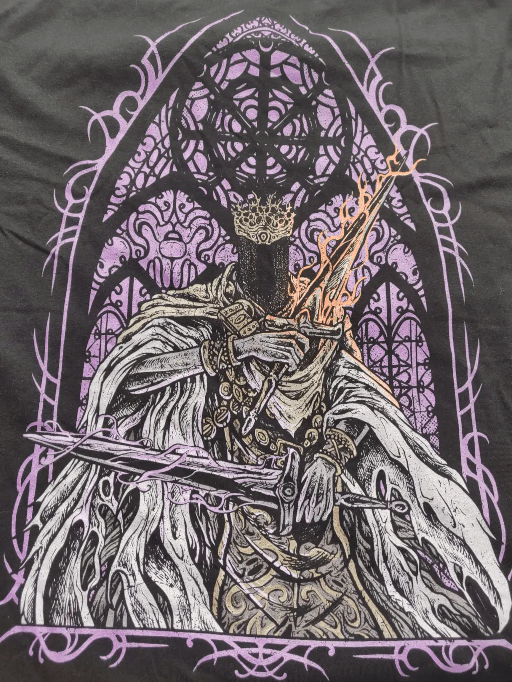 This Souls-inspired tee captures the cold authority of Pontiff Sulyvahn, whose rule warped Irithyll into a frozen throne of fear. With detailed artwork highlighting his flaming and frost blades and towering cathedral backdrop, this high-quality cotton shirt offers lasting comfort and dark fantasy style. Perfect for Unkindled who admire iconic villains, brutal boss fights, and the twisted politics of Lothric.